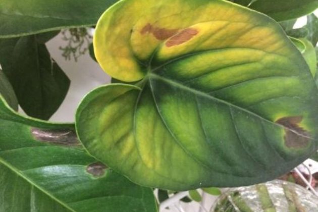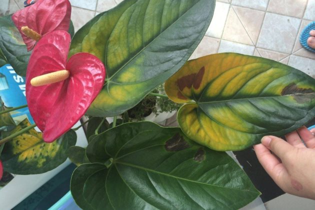 浙江红掌叶子发黄焦边干枯是怎么回事?