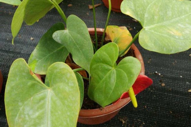 土培的红掌如果浇水过少,会导致植株长期缺水,养分不足而黄叶,所以我们要及时的给红掌浇水,浇水的原则还是见干见湿为宜。