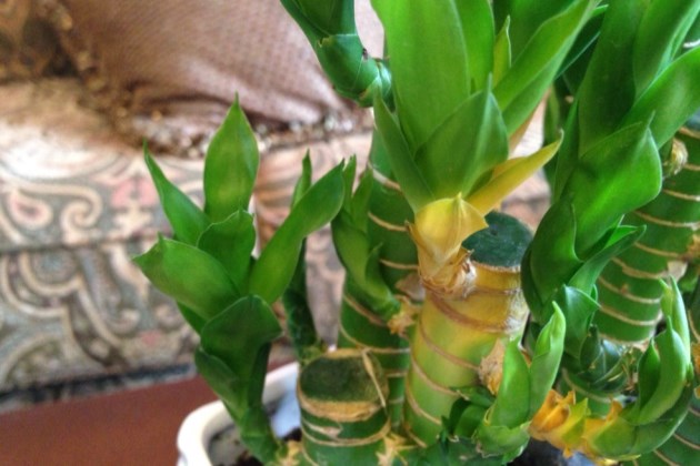 可以从底部,把富贵竹的叶子剥掉一些。这样不仅可以让养分均匀,也可以促进根的生长。如果是水培的富贵竹发生了黄叶,可以在水里放几个生锈的钉子,钉子里面有很多富贵竹需要的元素,可以让富贵竹的叶子变绿。(当然钉子要是铁的)。